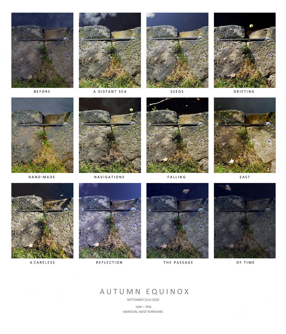 A series of images, with words, from the bank of the Huddersfield Narrow Canal in Marsden, West Yorkshire;