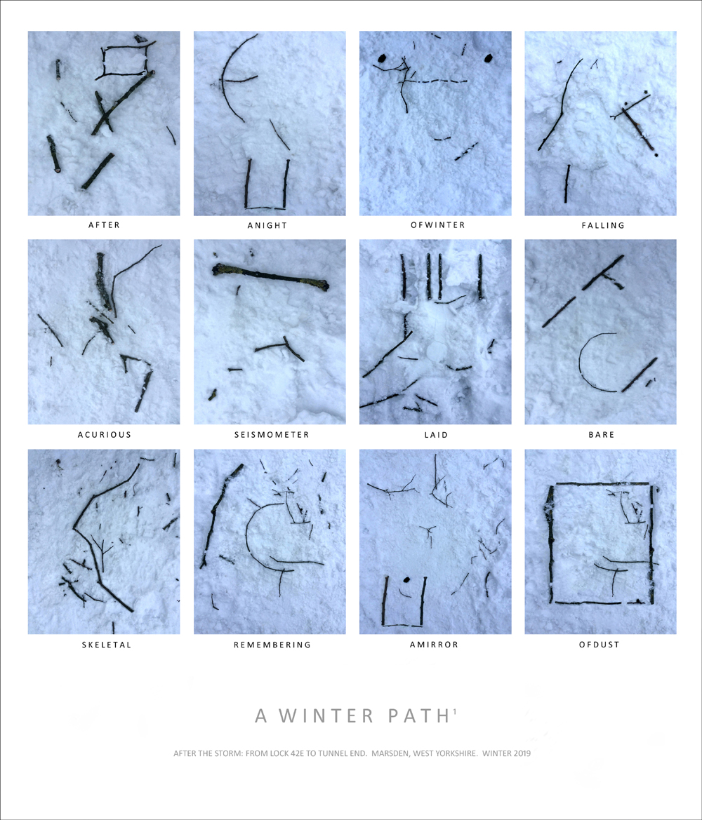 A Winter Path A series of ground images, with words, documenting a walk along the towpath of the Huddersfield Narrow Canal. 29.7cm x 34cm