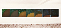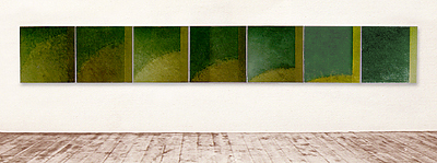 Green to Grey: Seven Miles. Earth and paint on canvas. 60cms x 420cms. 1982