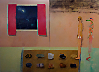 Traveller: If you thumb through ancient copies of Flash Art or Avalanche... you will find no mention of our names... And if you scan the walls of major galleries and museums... we will be notable... only by our absence... But there is always reflection and hope... For those of you old enough to remember Gallery House (next to the Goethe Institut), in the 1970's... or the CAS exhibition of 1989 in Covent Garden... we may just ring very distant, and slightly haunted, bells... Why haunted you may ask..? 'Distant' may seem obvious... if distance is synonymous with the passing of time... but is it..? We are both still alive, and therefore isn't the distance from our last appearance, to our next, only a matter of metres... or miles..? - in fact no distance at all, in a world of information touched by the touch of a screen... If we'd fallen from grace we'd be bitter... but we left before any ordination could take place... biding our time, and lives, until the necessary technology arrived; technology that would allow the stories to be told, and the paintings to be painted, without the awkward breath of the old technologies - and our foetal ambition - clouding the glass... Which is where the word 'haunted' shuffles onto our small stage... We are here to re-introduce ourselves to a world that hardly knew we existed. We are both old and new simultaneously... placing pieces missing, for nearly 30 years, from the nation's walls, alongside the whisperings of more recent works... Sometimes, the last pieces of a jigsaw puzzle... are a long time being found... |