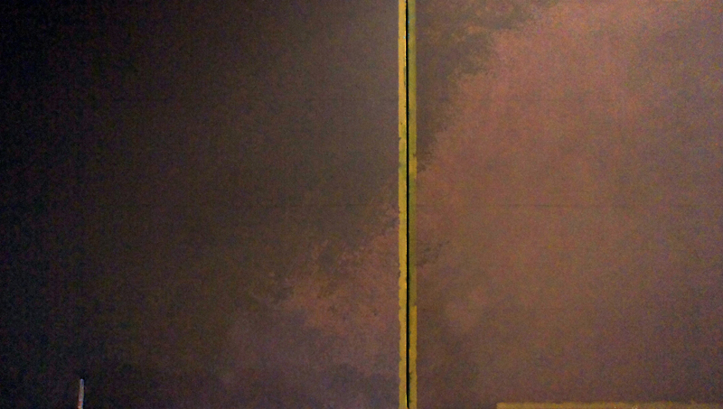 ''Penlan Fawr 3: Plans For A Derelict Building'' Earth (above Cwmystwyth, Mid Wales) and paint on canvas, with slate rectangle. 58cms x102cms. Three pieces.