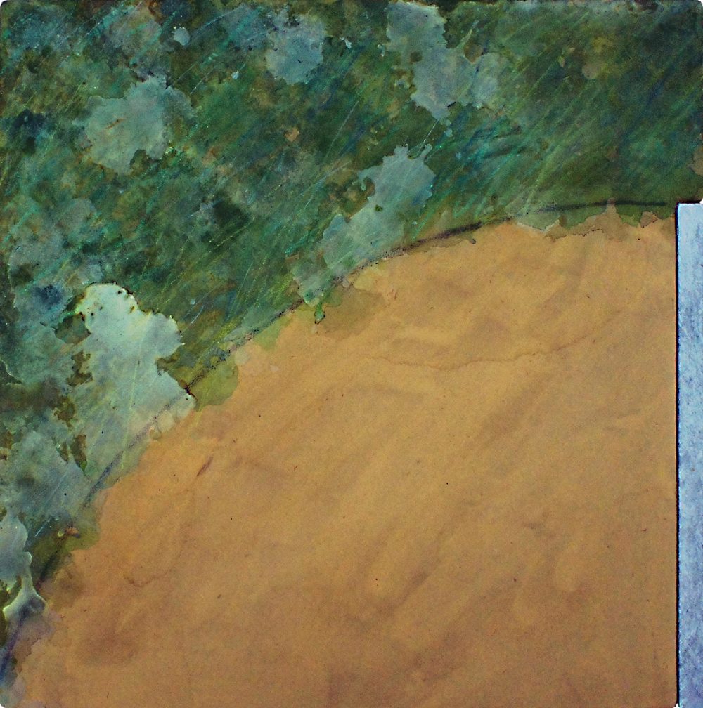Panel 3: Earthstain on canvas, with charcoal, paint, and lakeland slate. 60cms x 60cms x 5cms. August 2013
