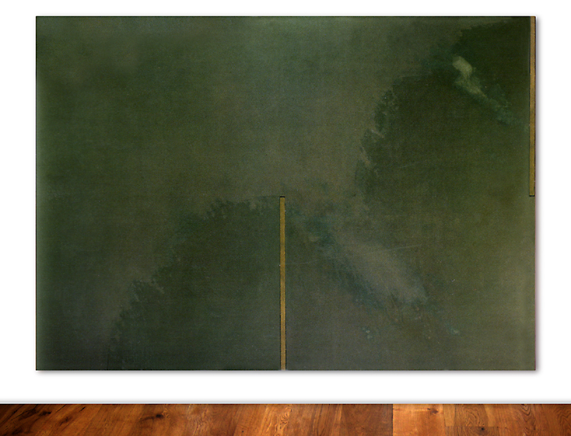 ''Repeated Landmark 2'' Earth (Blea Moor, North Yorkshire) and paint on canvas. 154cms x200cms. Three pieces.
